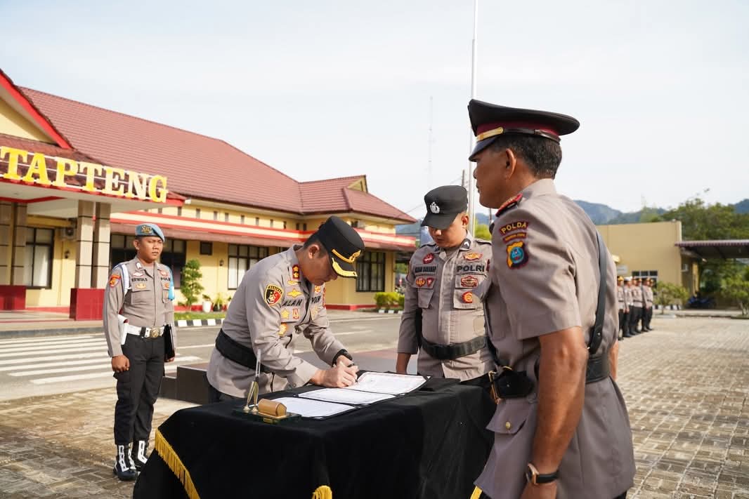 Tapanuli Tengah, Newsliputan.com – Kapolres Tapanuli Tengah, AKBP Muhammad Alan Haikel, SKM SIK MIK memimpin upacara Serah Terima Jabatan (Sertijab) sejumlah pejabat utama di lingkungan Polres Tapanuli Tengah. Upacara yang digelar di lapangan Mapolres Tapanuli Tengah, Selasa (20/1/2026) pagi.